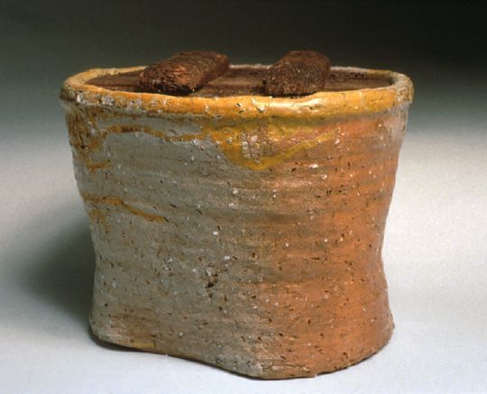 Brine Pickle Saddle Crock, Cone Ten Soda Fired Stoneware with Beach Combed lid finished with linseed oil, burnt umber, turpentine, nails.